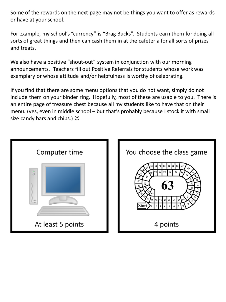 (Menu cards are included in the product, but you may want to survey your students to see what they might like to earn. Most of the things on my menu are privileges, not treats. There is one Treasure chest menu item and one cookie or candy item.)